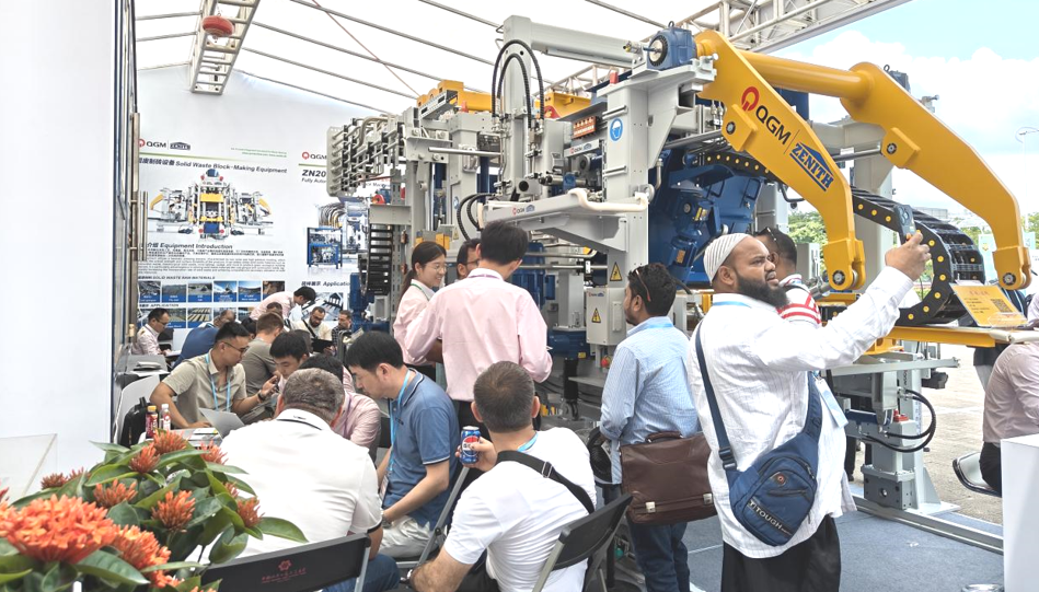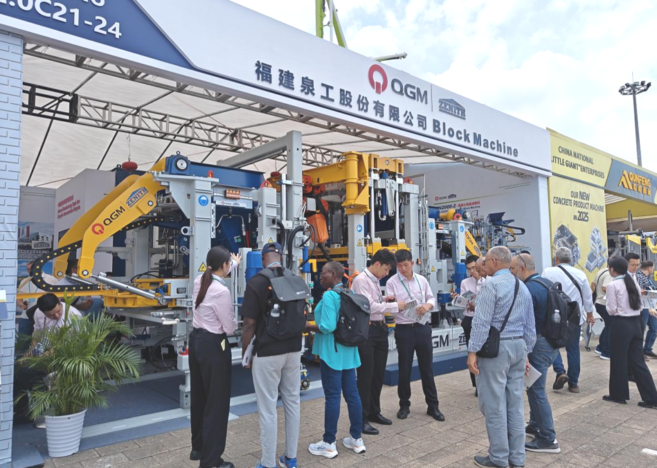 Yn y Ffair Treganna hon, arddangosodd Quangong Co, Ltd ei beiriannau brics di-danio diweddaraf ac offer llinell gynhyrchu blociau concrit. Denodd y bwth dyrfaoedd mawr, gyda'r ardal arddangos blociau concrit onglog yn denu prynwyr byd-eang i stopio ac ymholi - yn cynnwys cynhyrchu heb odyn, defnydd isel o ynni, a chynaliadwyedd amgylcheddol. Tynnodd arddangosfa llinell gynhyrchu brics deallus Cyfres ZN sylw sylweddol hefyd. Integreiddiodd QuanGong weithrediad a chynnal a chadw o bell gyda diagnosteg cwmwl yn ei offer gwneud brics, gan alluogi defnyddwyr i gael mewnwelediad dyfnach i gyflawniadau diweddaraf y cwmni mewn ailgylchu adnoddau gwastraff solet a thechnoleg gweithgynhyrchu brics carbon isel.
